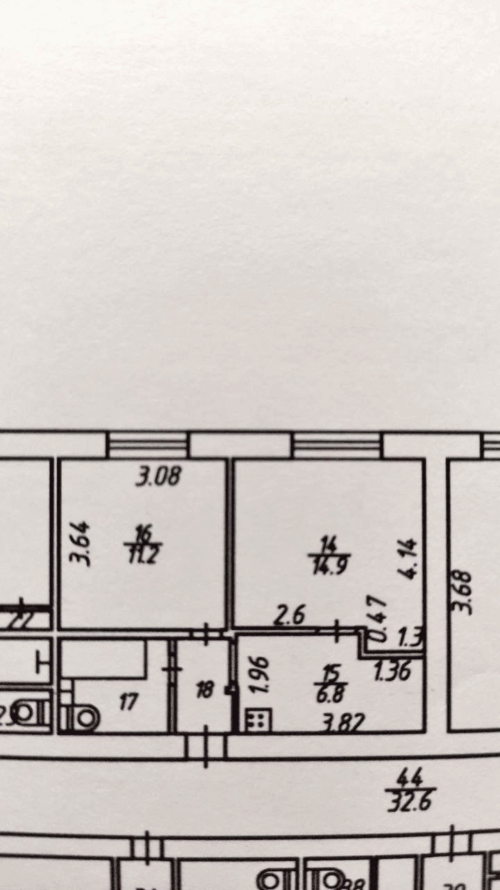 О квартире и доме: Кирпичный дом 1984 года.. Общая площадь 39,5 кв.м, кухня 6,8 кв.м, комнаты 14,9 + 11,2 кв.м, с/у 4,5 кв.м.