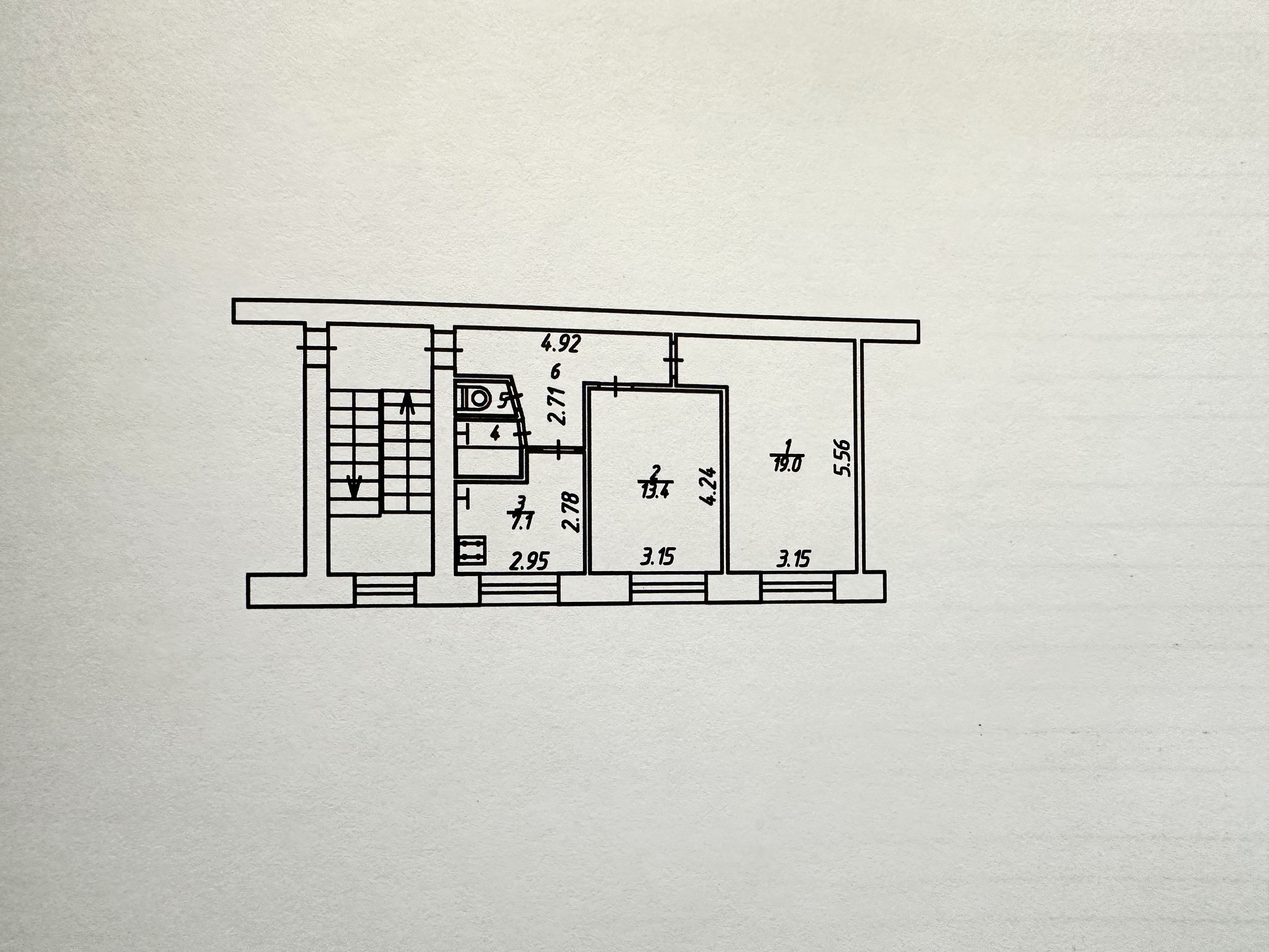Общая площадь 50,6 кв.м, кухня 7,1 кв.м, комнаты 19 + 13,4 кв.м, прихожая 8 кв.м, ванная 2,1 кв.м, туалет 1 кв.м.